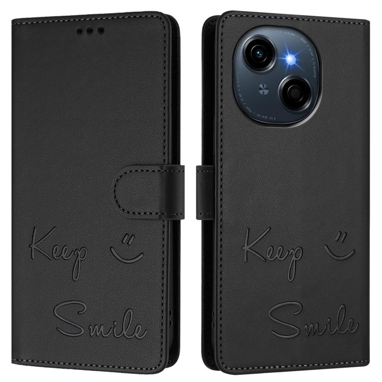 Funda de Cuero Rfid con Relieve Sonriente para Tecno Spark Go 1/Go 2025 (Negra)