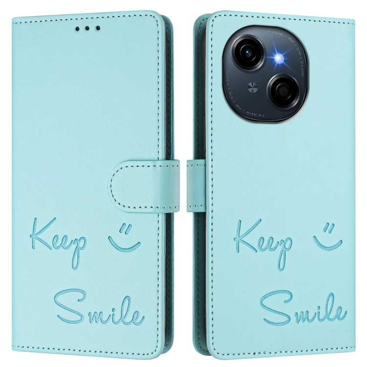 Funda de Cuero Rfid con Relieve Sonriente para Tecno Spark Go 1/Go 2025 (Verde Menta)
