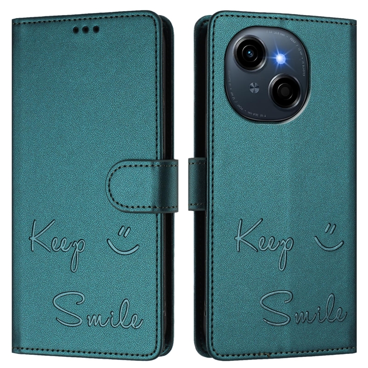 Funda de Cuero RFID con Relieve Sonriente para Tecno Spark Go 1/Go 2025 (Verde Pavo Real)