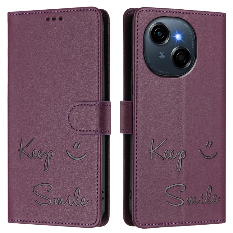 Funda de Cuero Rfid con Relieve Sonriente para Tecno Spark Go 1/Go 2025 (Violeta)