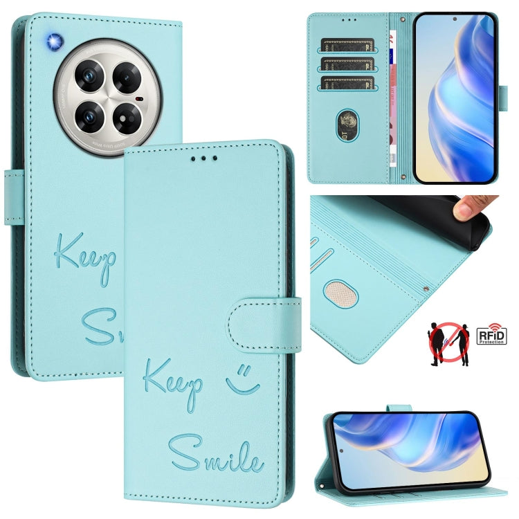 Funda de Cuero Rfid con Relieve Sonriente para Teléfono Infinix Zero 40 4G/5G (Verde Menta)