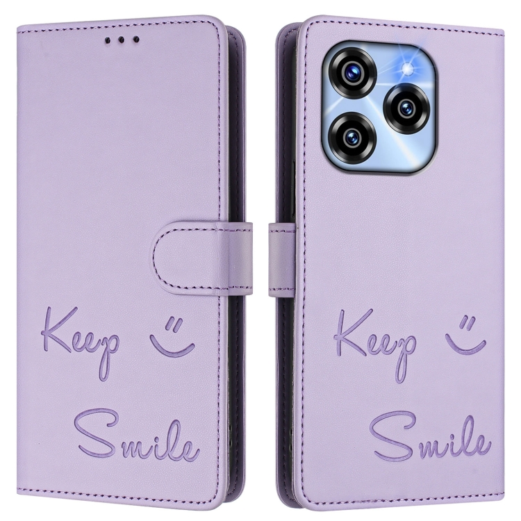 Funda de Cuero Rfid con Relieve Sonriente para Teléfono Oukitel C50 (Morado Claro)