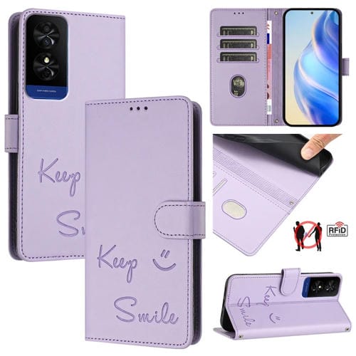 Funda de Cuero Rfid TCL 50 5G con Relieve Sonriente (Morado Claro)