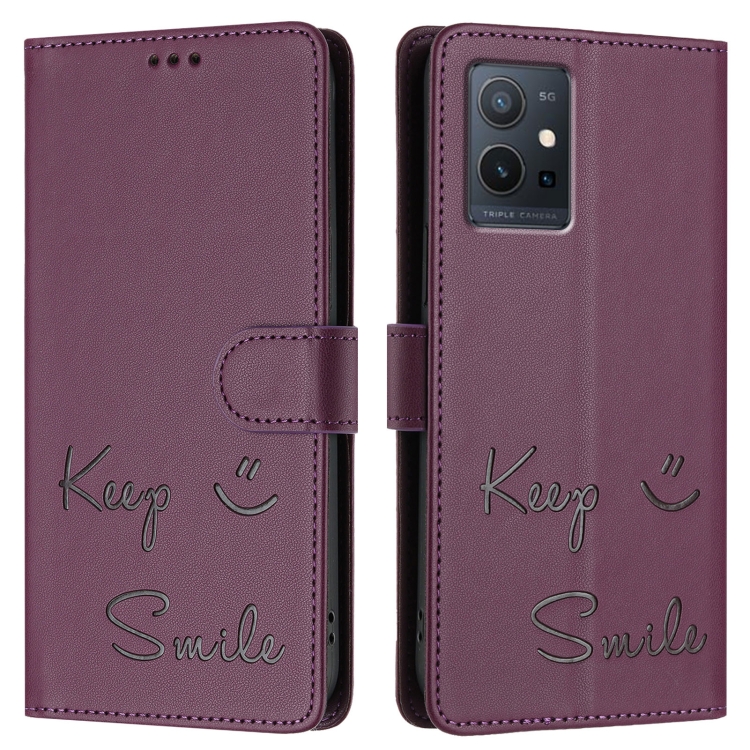 Funda de Cuero Rfid con Relieve Sonriente para Vivo Iqoo U5E 5G/Y30 5G (Violeta)