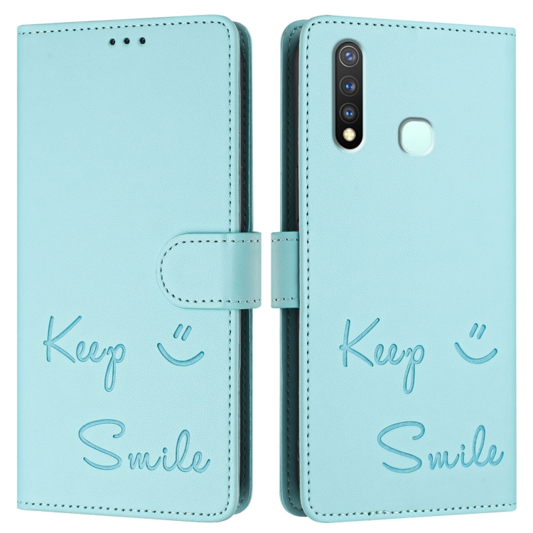 Funda de Cuero Rfid con Relieve Sonriente para Vivo Y19/U3/Y5S/Z5I/U20 (Verde Menta)