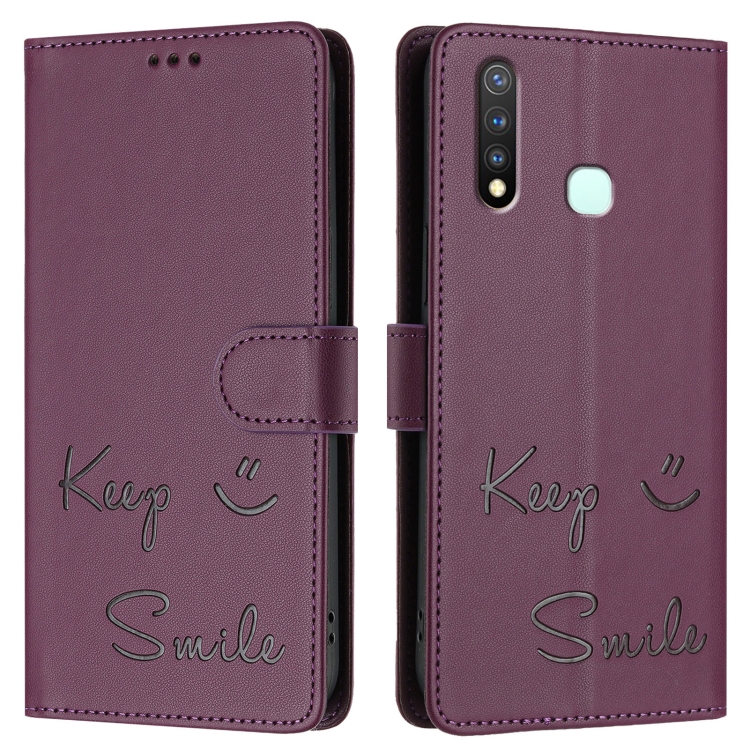 Funda de Cuero Rfid con Relieve Sonriente para Vivo Y19/U3/Y5S/Z5I/U20 (Violeta)