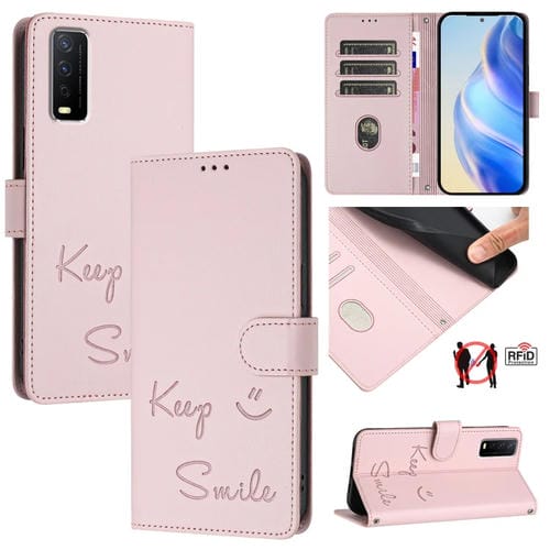 Funda de Cuero Rfid con Relieve Sonriente para Vivo Y20A/Y20G/Y12A (Rosa)