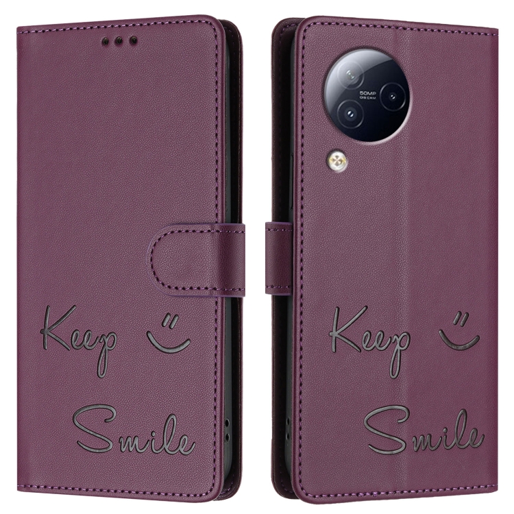 Funda de Cuero Rfid con Relieve Sonriente para Xiaomi Civi 3 (Violeta)