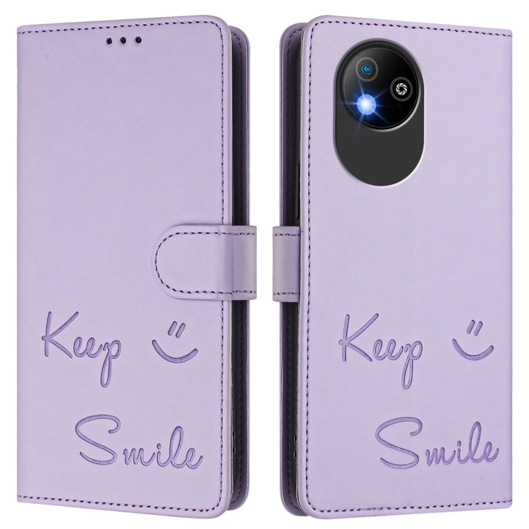 Funda de Cuero Rfid con Relieve Sonriente para ZTE Blade A35 Lite (Morado Claro)