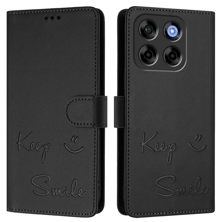 Funda de Cuero Rfid con Relieve Sonriente para ZTE Blade V70 (Negra)