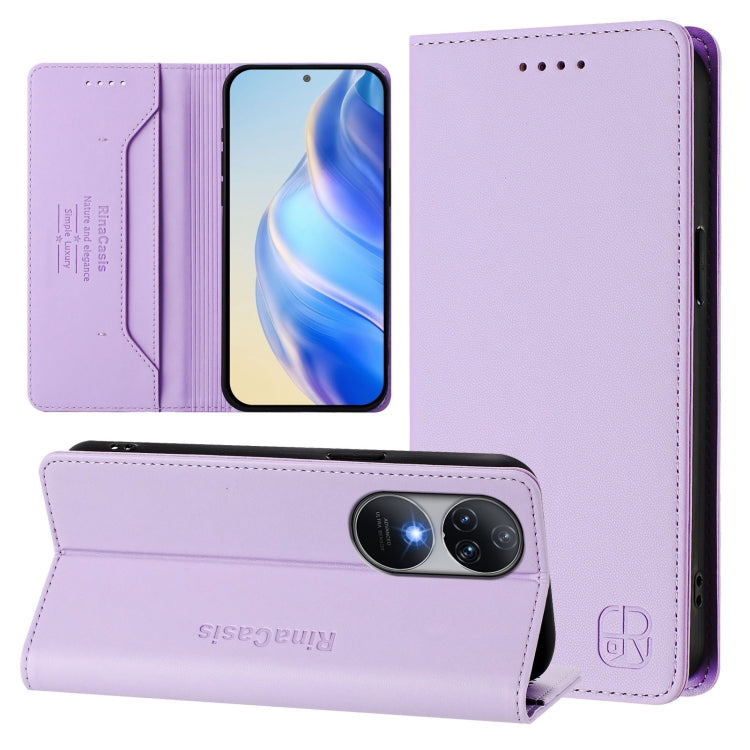 Funda de Cuero Rfid con Succión Magnética y Doble Pliegue para Oukitel C38 Rc01 (Morado Claro)