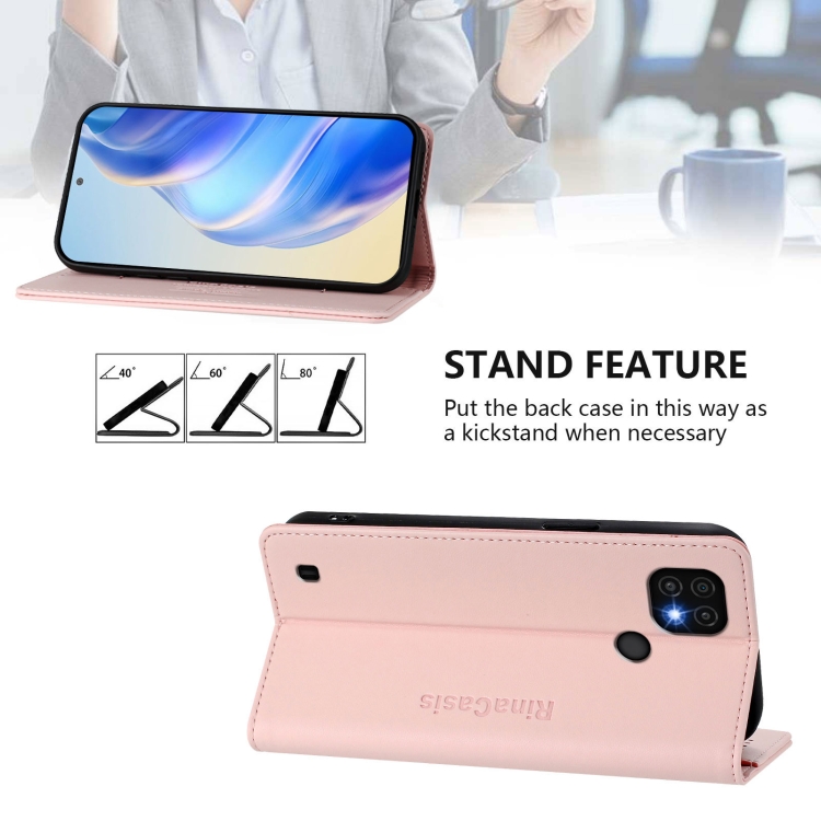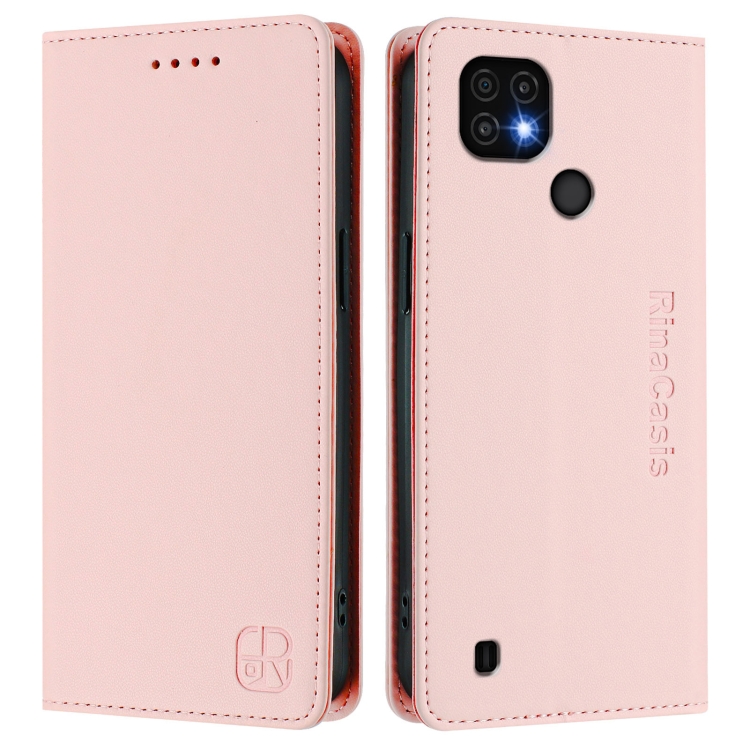 Funda de Cuero Rfid con Succión Magnética y Doble Pliegue para Realme C20 / C11 2021 / C21 Rc01 (Rosa)