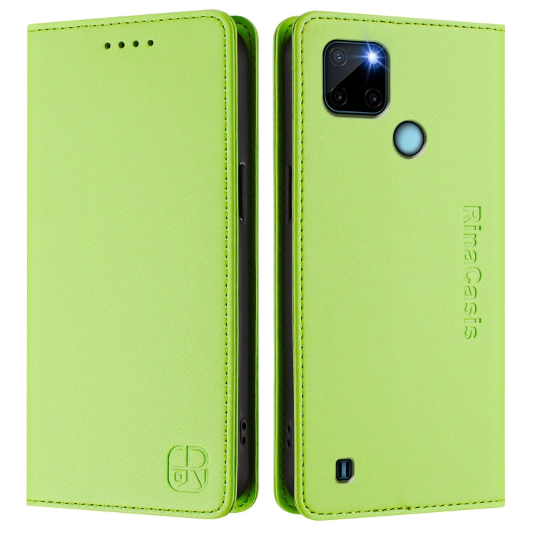 Funda de Cuero Rfid con Succión Magnética y Doble Pliegue para Realme C21Y Rc01 (Verde Hierba)