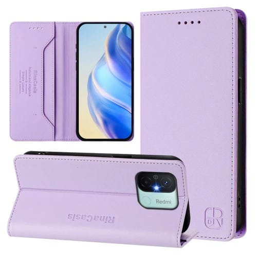 Funda de Cuero Rfid con Succión Magnética y Doble Pliegue para Redmi 12C/11A Rc01 (Morado Claro)