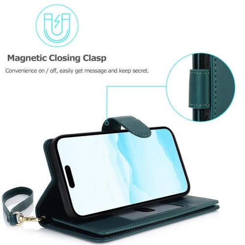 Funda de cuero RFID con tarjetero para iPhone 17 (verde)