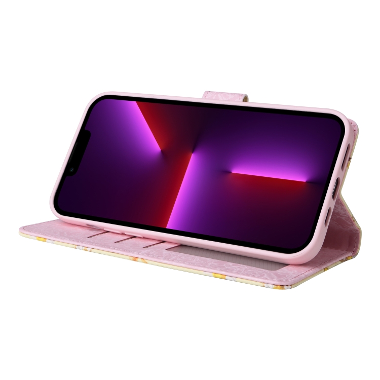 Funda de Cuero Rfid para iPhone 13 Pro Pintura Bronceadora (Margarita Amarilla)