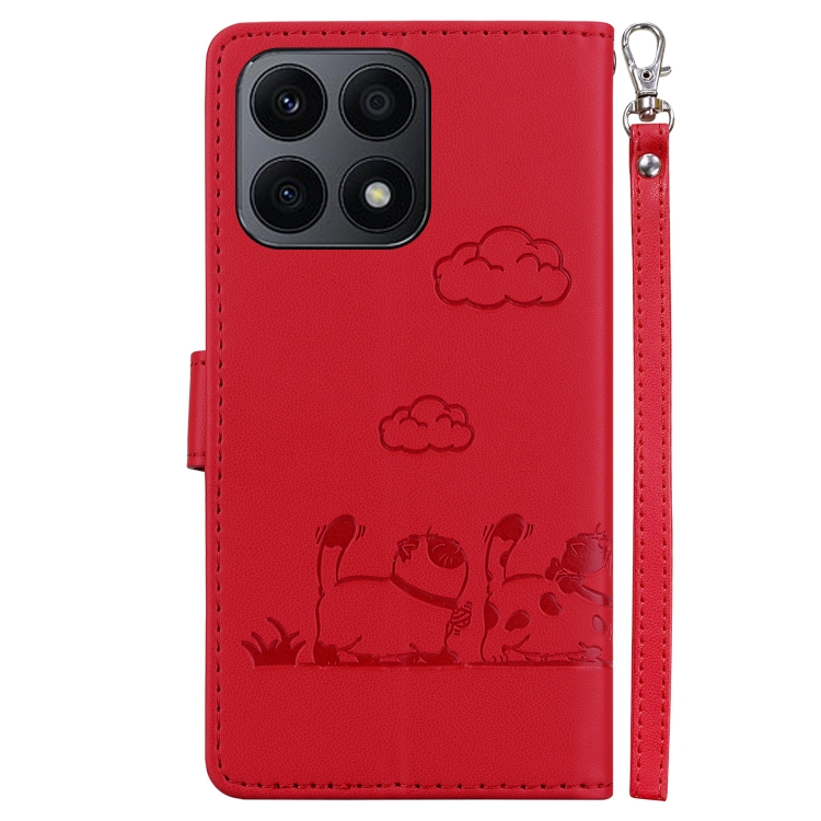 Funda de Cuero Rfid para Honor X8A con Diseño de Gatos (Roja)
