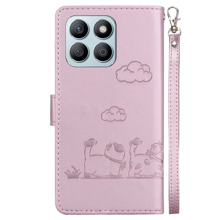 Funda de Cuero Rfid para Honor X8B con Diseño de Gatos (Oro Rosa)