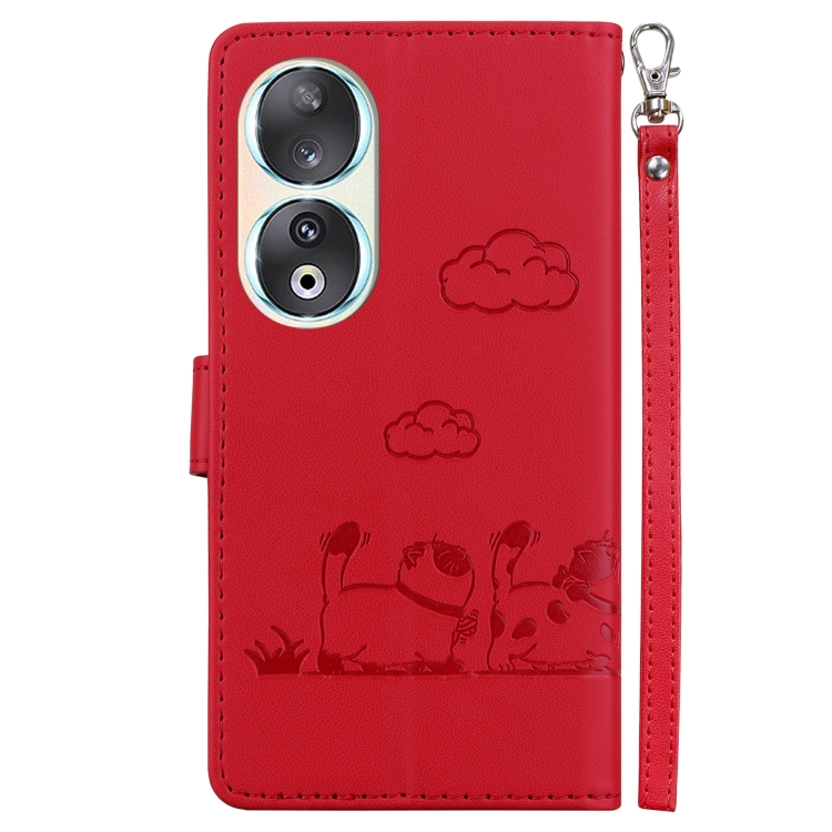 Funda de Cuero Rfid para Honor 90 con Diseño de Gatos (Roja)