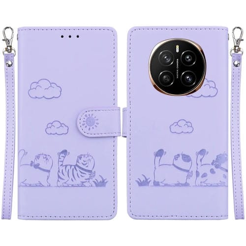 Funda de Cuero Rfid para Honor Magic7 con Diseño de Gatos (Morado)