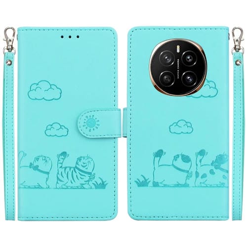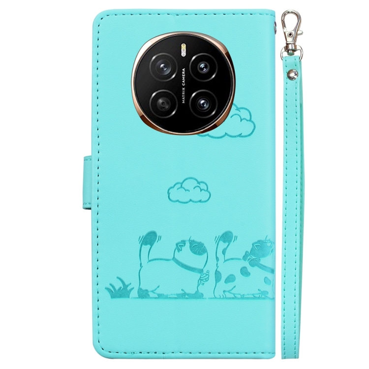 Funda de Cuero Rfid para Honor Magic7 con Diseño de Gatos (Verde)