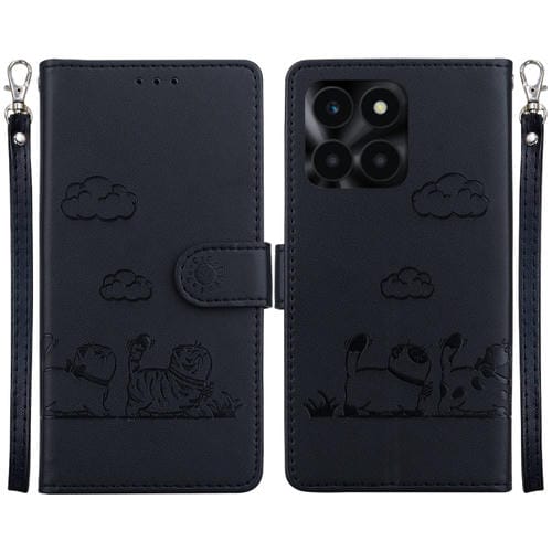 Funda de Cuero Rfid para Honor X6A con Diseño de Gatos (Negra)