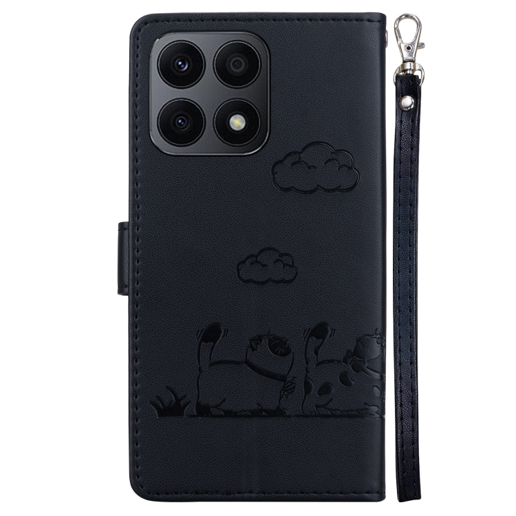 Funda de Cuero Rfid para Honor X8A con Diseño de Gatos (Negra)