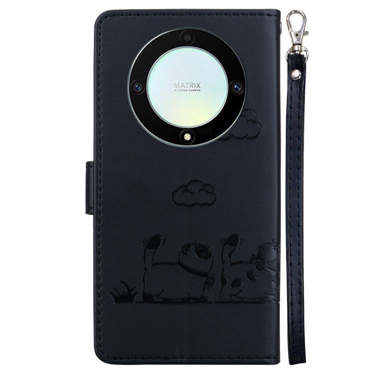 Funda de Cuero Rfid para Honor X9A con Diseño de Gatos (Negra)