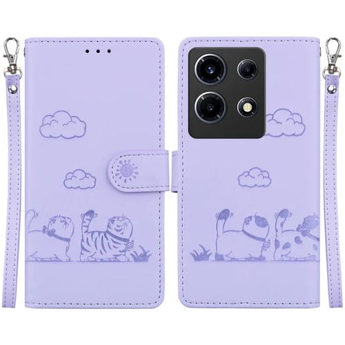Funda de Cuero Rfid para Teléfono Infinix Note 30 Vip con Lindos Gatos (Morado)