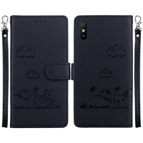 Funda de Cuero Rfid con Diseño de Gatos para Redmi 9A/9I Sport (Negra)