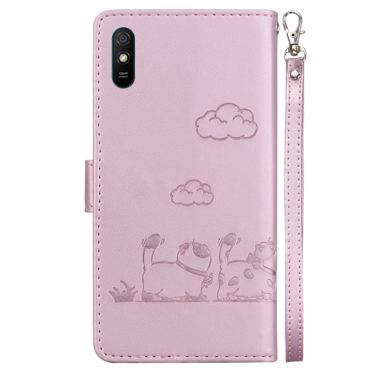 Funda de Cuero Rfid con Diseño de Gatos para Redmi 9A/9I Sport (Oro Rosa)