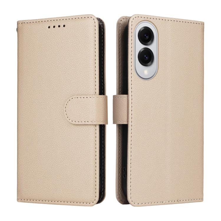 Funda de cuero tipo billetera con bloqueo RFID para Samsung Galaxy S25 Edge 5G, textura Litchi, para 3 tarjetas (beige)