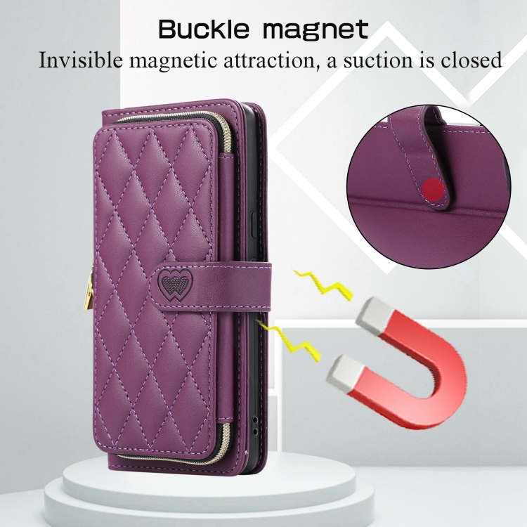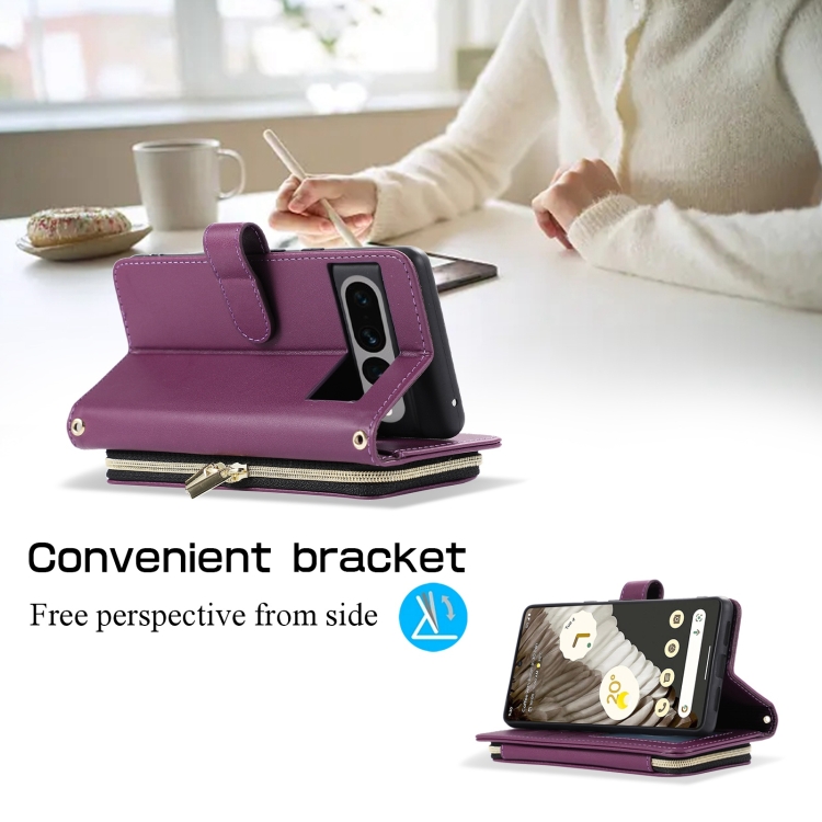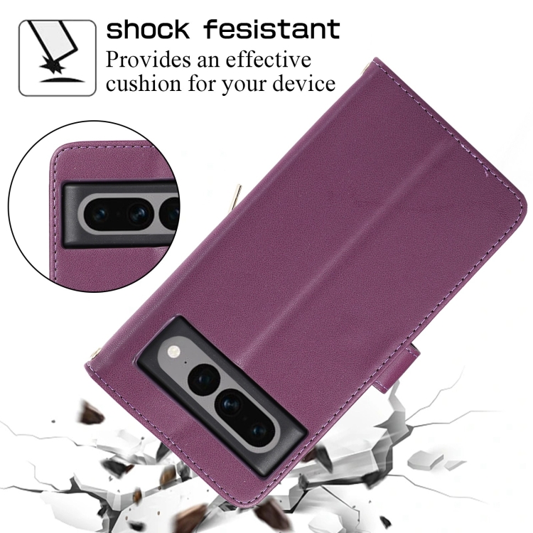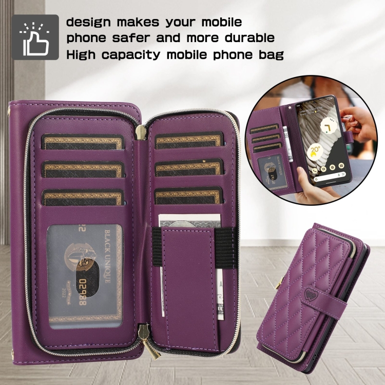 Funda de Cuero Tipo Billetera con Cremallera Completa y Diseño Rombal para Google Pixel 7 Pro (Morado Oscuro)