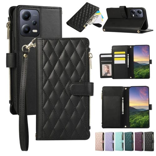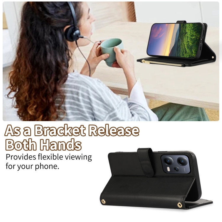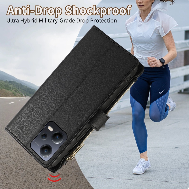 Funda de Cuero Tipo Billetera con Cremallera Rombal Global para Redmi Note 12 5G (Negra)