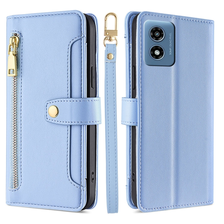 Funda de Cuero Tipo Billetera con Cremallera y Textura de Oveja para Motorola Moto G 5G (2024) (Azul)