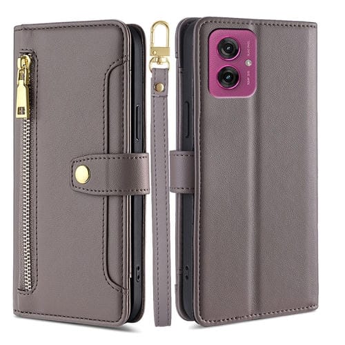Funda Cuero Tipo Billetera Motorola Moto G55 5G con Cremallera y Textura Oveja (Gris)