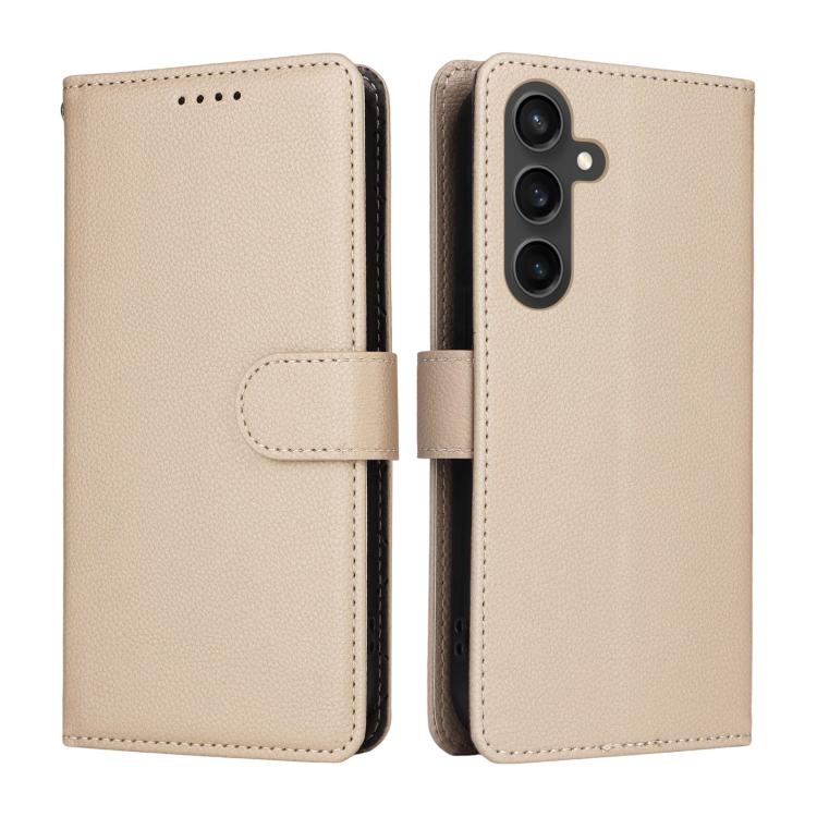 Funda de cuero tipo billetera con textura Litchi y bloqueo RFID para Samsung Galaxy S23 FE 5G (beige)