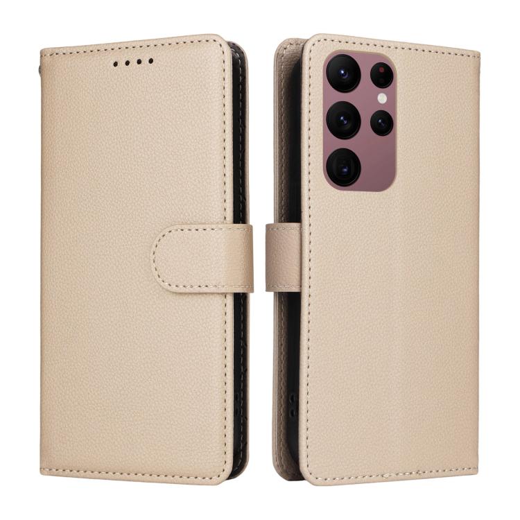 Funda de cuero tipo billetera con textura Litchi y bloqueo RFID para Samsung Galaxy S23 Ultra 5G (beige)