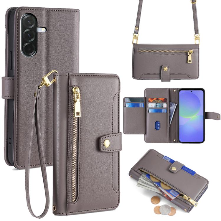 Funda de cuero tipo cartera con cremallera y textura de oveja para Samsung Galaxy A36 5G (gris)