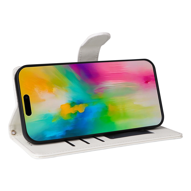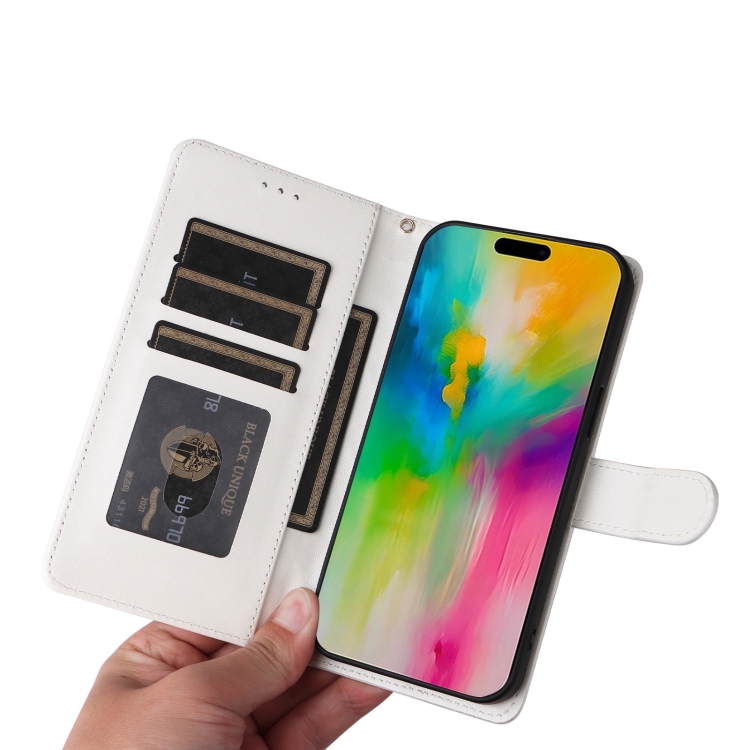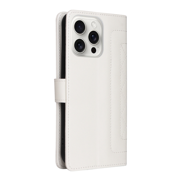 Funda de Cuero Tipo Cartera para iPhone 16 Pro Diseño Entramado de Diamantes (Blanca)