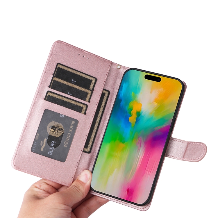 Funda Tipo Libro Cuero iPhone 16 Diseño Entramado Diamantes (Oro Rosa)