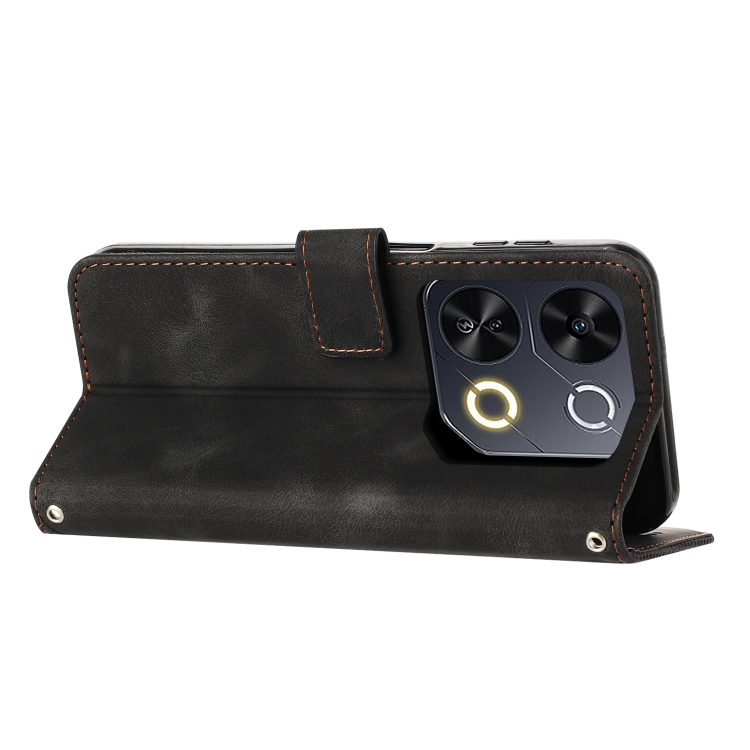 Funda de Cuero Triangular con Cordón Largo para Teléfono Itel P65 Dream (Negro)