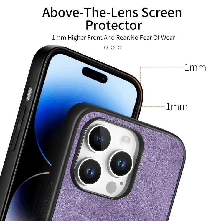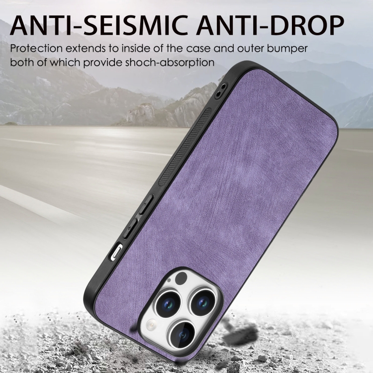 Funda de Cuero Vintage para iPhone 16 Pro con Parte Trasera de Policarbonato (Morado)