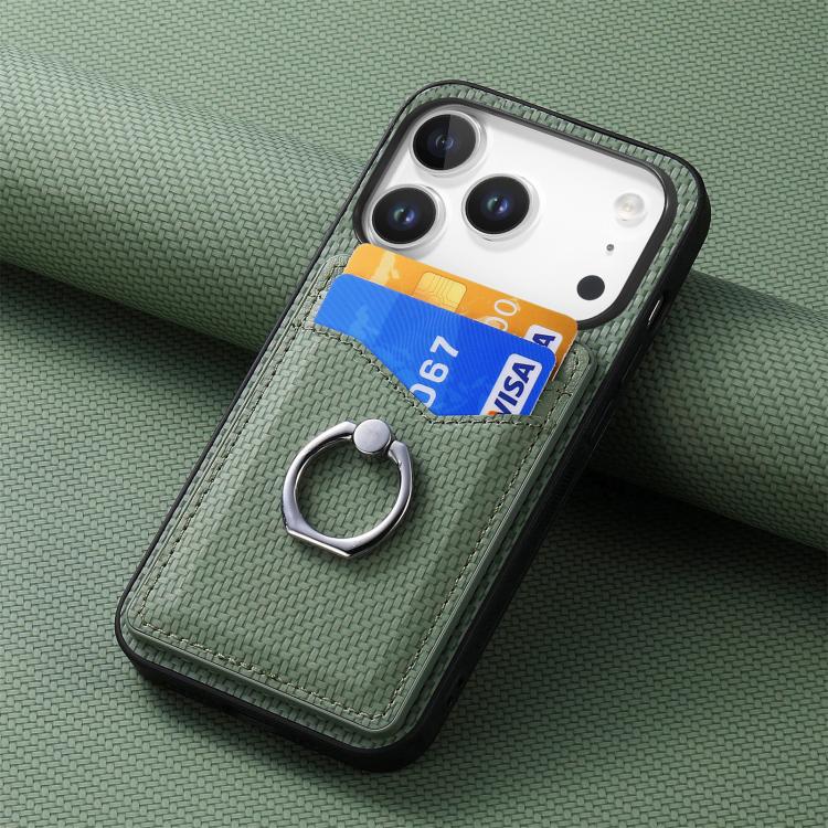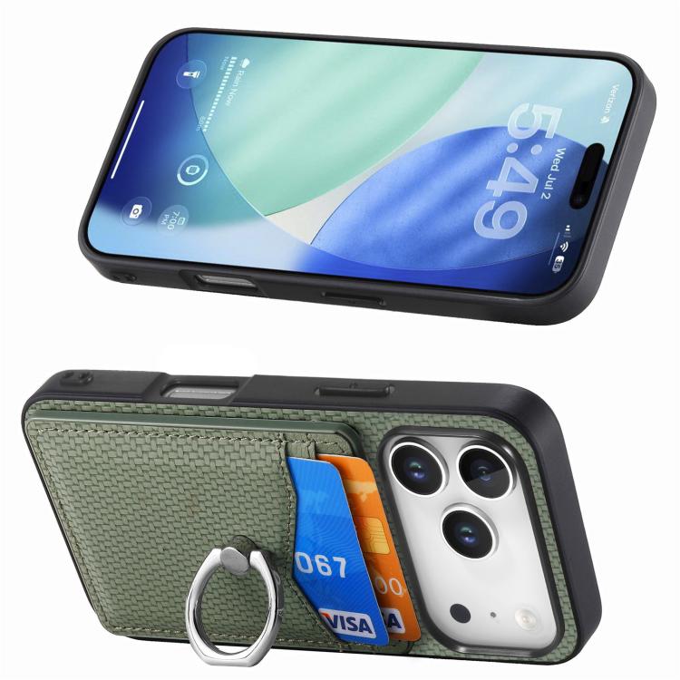 Funda de fibra de carbono con anillo para tarjeta para iPhone 17 Pro (verde)