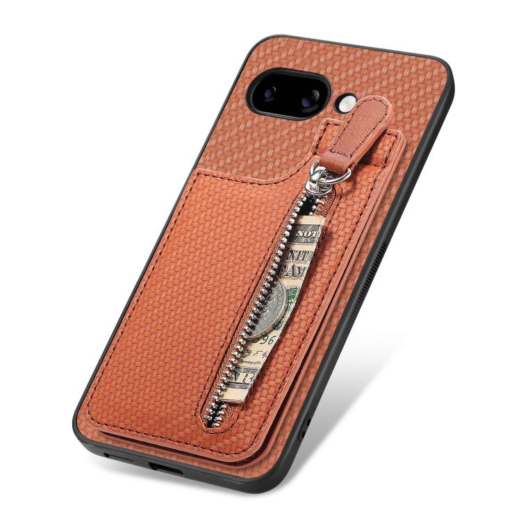 Funda Fibra de Carbono con Cremallera Vertical para Google Pixel 9A (Marrón)