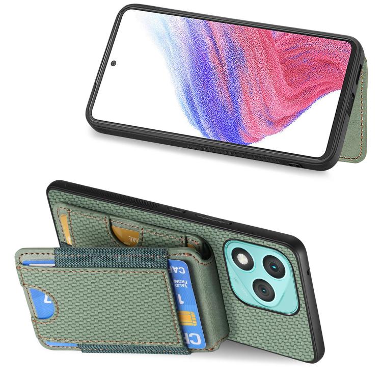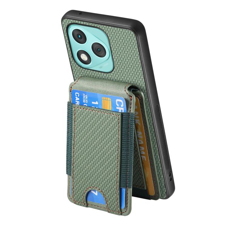 Funda de fibra de carbono con tapa vertical tipo billetera para Honor 400 Lite (verde)