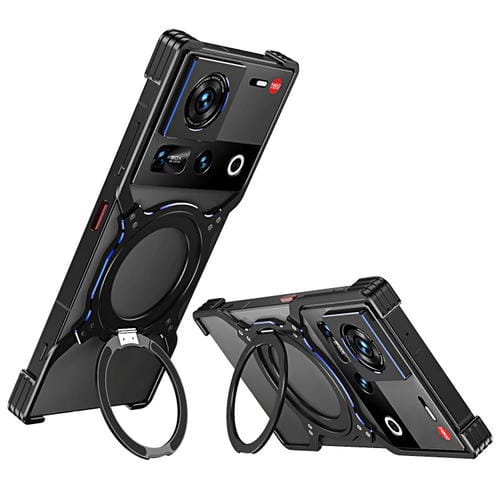 Funda Metal para Teléfono ZTE Nubia Z70 Ultra con Soporte Magsafe y Brazo Mecánico (Negro y Azul)