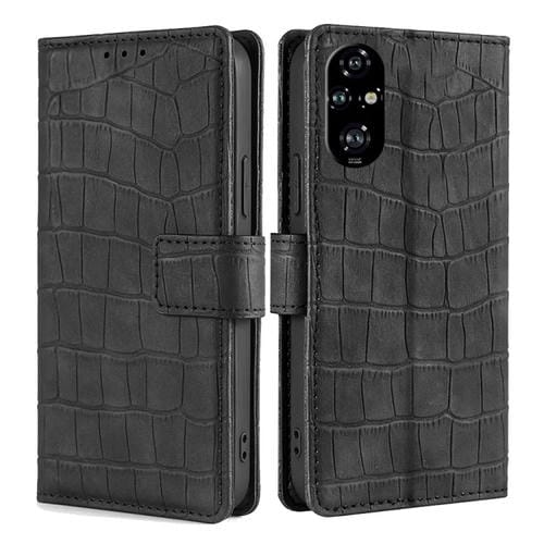Funda de Piel con Cierre Magnético para Honor 200 Pro 5G (Negra) Diseño Cocodrilo