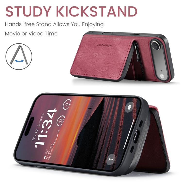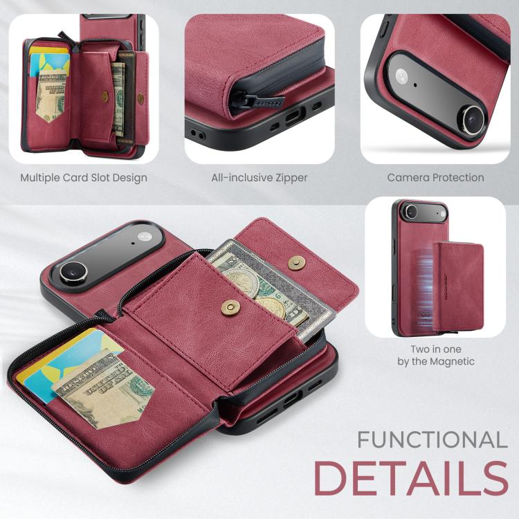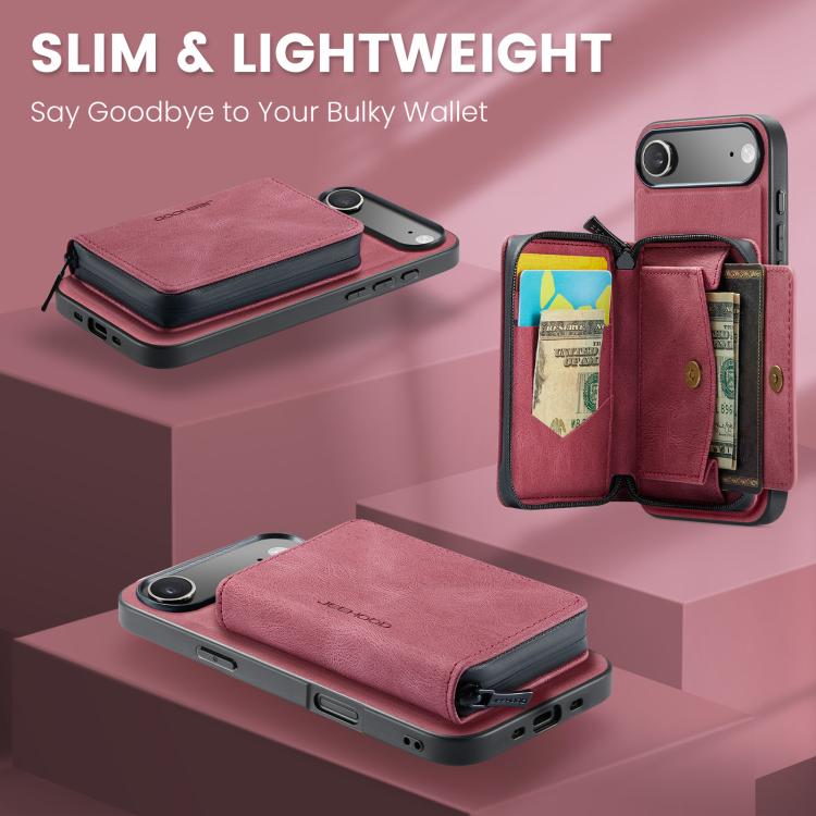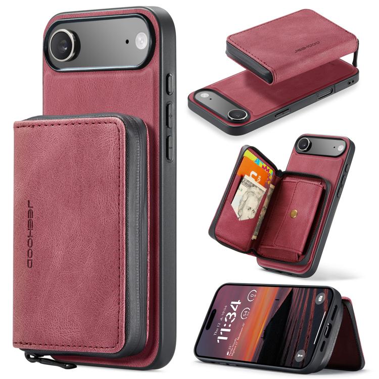 Funda de piel con cremallera magnética JEEHOOD J02 tipo libro horizontal para iPhone Air (Roja)