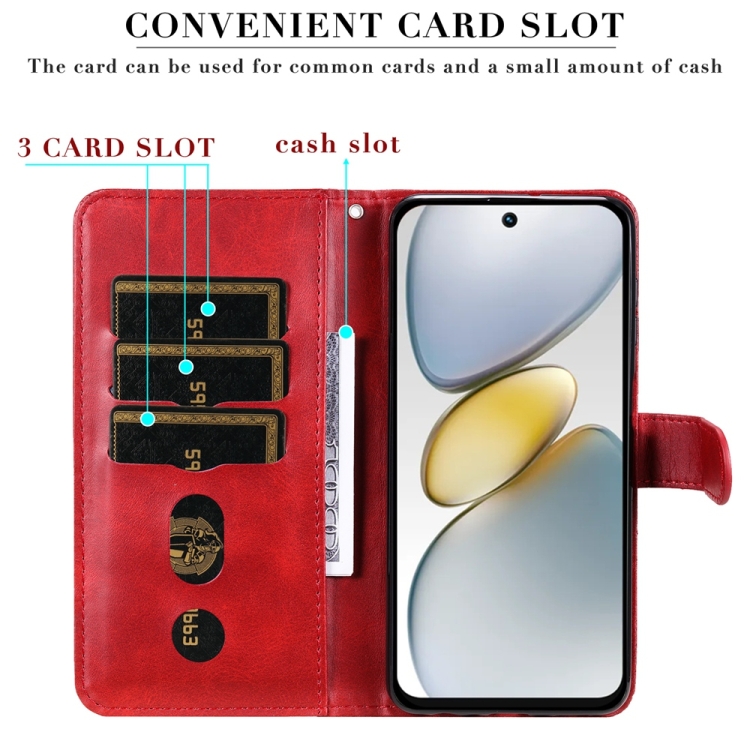Funda de Piel con Cremallera y Textura de Becerro para Tecno Spark Go 1 / Pop 9 / Spark Go 2025 (Rojo)